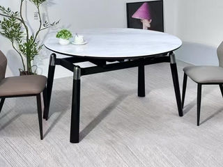 洛萨 现代 橡木+超晶石 1.3米 拉伸 功能 圆餐桌