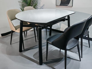洛萨 现代 欧洲灰钢化玻璃+碳素钢裙子底座 1.3米 拉伸 功能 圆餐桌