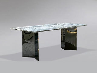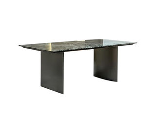 贝斯solo 网红 极简 不锈钢脚架+加厚边芬迪绿奢石桌面 方形 1.6米 奢石餐桌