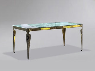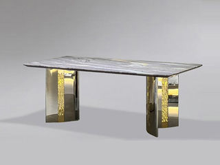 小红书系列 轻奢 桌面:天然石+绒布底板脚架:不锈钢镀金 1.6米餐桌