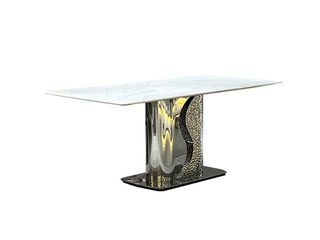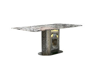小红书系列 轻奢 桌面:天然石+绒布底板脚架:不锈钢镜面+水波纹 1.6米餐桌