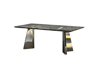小红书系列 轻奢 桌面:天然石+绒布底板脚架:不锈钢镜面 1.6米餐桌