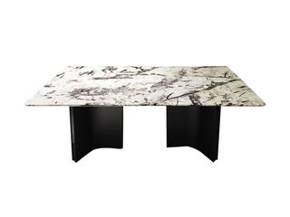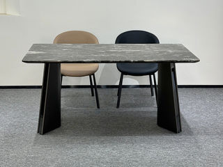 洛萨 现代 碳素钢架子+雪山石岩板 1.6米 拉伸 功能 长餐桌