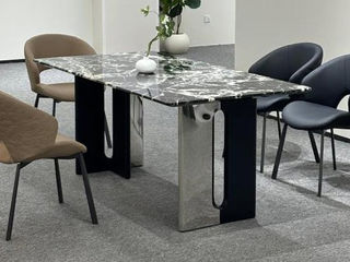 小红书系列 轻奢 桌面:天然石+绒布底板脚架:不锈钢亮黑 1.6米餐桌