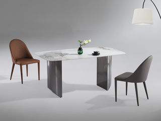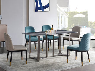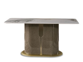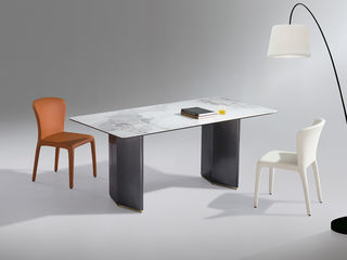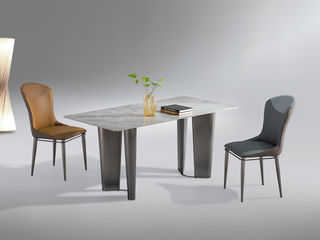 拜洛迪 轻奢 装饰皮革+拉丝香槟金不锈钢+磨砂岩板 1.6米餐桌