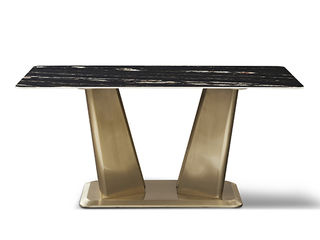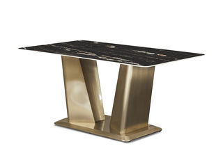 拉斐尔 轻奢 岩板+电镀不锈钢五金 1.6米餐桌