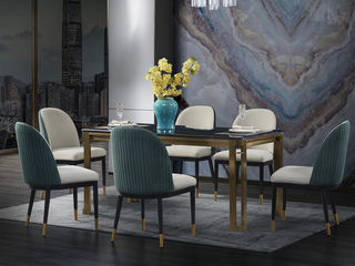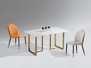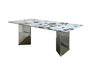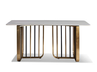 拉斐尔 轻奢 电镀不锈钢五金+天然大理石 1.6米餐桌