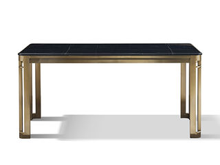 拜洛迪 轻奢 拉丝香槟金不锈钢+大理石 黑色 1.6米餐桌