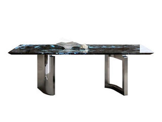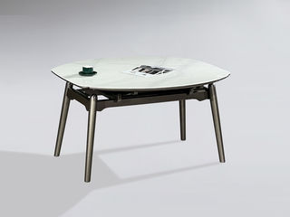 洛萨 现代 碳素钢架子+雪山石岩板 1.6米 拉伸 功能 长餐桌