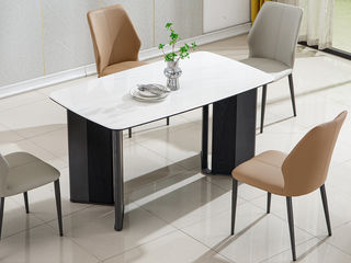 甄品家具 轻奢 桌面:岩板+底板脚架:不锈钢黑钛注:(此价格为蛋型亮光单价) 1.6米餐桌