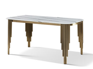 小红书系列 轻奢 桌面:天然石脚架:铝合金镀金 1.6米餐桌