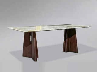 小红书系列 极简 桌面:天然石+绒布底板脚架:不锈钢本色亮光+黑胡桃 1.6米餐桌
