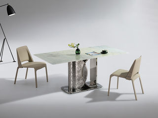 小红书系列 轻奢 桌面:天然石+绒布底板脚架:不锈钢镜面 1.6米餐桌