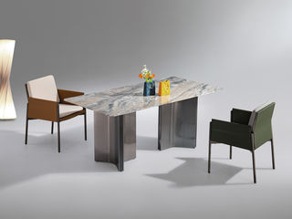 小红书系列 轻奢 桌面:天然石+绒布底板脚架:不锈钢钛金+马鞍皮 1.6米餐桌
