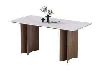 甄品家具 极简 闪电灰微晶石+全托底板+实木弯板+胡桃色 1.6米餐桌