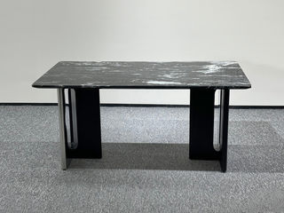 贝斯solo 网红 极简 不锈钢脚架+加厚边宇宙黑奢石桌面 方形 1.6米 奢石餐桌