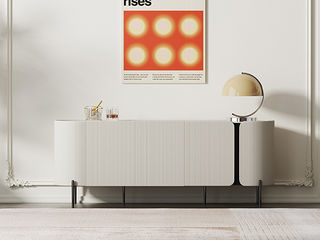 鹿屿 奶油风 灰白色烤漆(环保中纤板E1板)+不锈钢黑钛金属脚 1.8米餐边柜