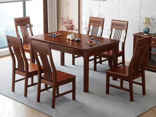宝瑞·檀风 新中式 印尼金花梨木框架+多层实木板贴皮 紫檀色 1.35米餐桌