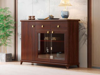 宝瑞·檀风 新中式 印尼金花梨木框架+多层实木板贴皮+玻璃+静音导轨+电镀五金 紫檀色 餐边柜