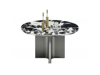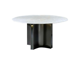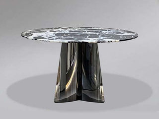 贝斯solo 设计师 网红 极简 卡里冰玉天然石+不锈钢灰钛 1.35米 圆餐桌(含转盘)