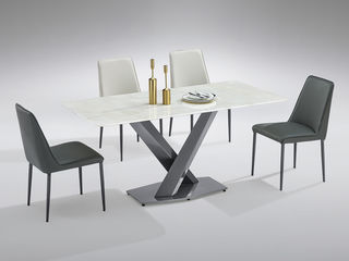 小红书系列 轻奢 桌面:天然石+绒布底板脚架:不锈钢镜面 1.6米餐桌