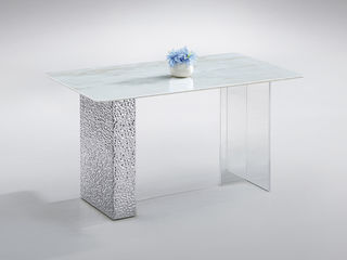 小红书系列 现代简约 卡里冰玉天然石+亚克力脚+电镀不锈钢脚+底板 1.4米长餐桌