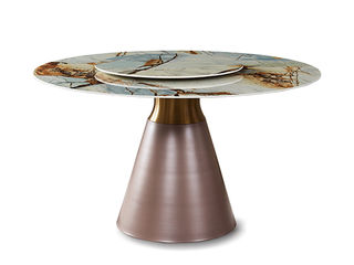 拜洛迪 轻奢 不锈钢底座+罗马印象奢石岩板面 1.35米圆形餐桌带转盘