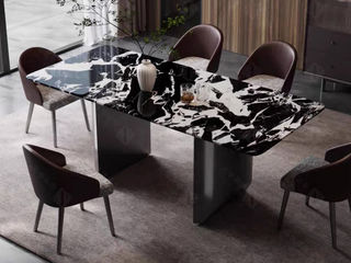 柏翠丝 网红 天然黑玫瑰奢石+TY36不锈钢底座+加厚下斜边+封釉底板 1.4米 长餐桌