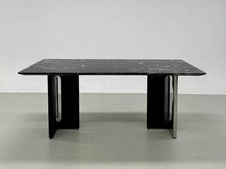 贝斯solo 网红 极简 不锈钢脚架+加厚边宇宙黑奢石桌面 方形 1.6米 奢石餐桌