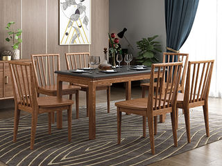 乐芙兰 北欧 进口白蜡木+大理石面 胡桃色 火烧石 1.4米餐台