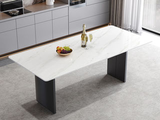 A家家居 现代简约 12mm雪山白亮光岩板+不锈钢(带底板) 图片色 1.4米长餐桌