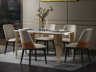 拉斐尔 轻奢 电镀不锈钢五金+天然大理石 1.6米餐桌