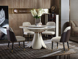 皇朝家居 现代 饰面大理石+玻璃钢纤维烤金属漆 圆1.5米餐桌
