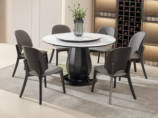 中古·尚 网红 中古风 进口像胶木+多层实木板+贴拼花木皮+岩板(含转盘) 胡桃色 1.2米圆桌