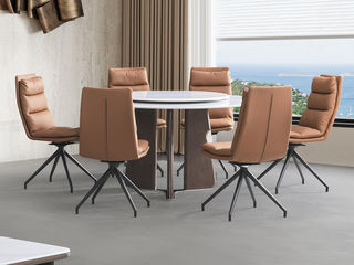 皇朝家居 现代 饰面大理石+碳素钢烤漆 圆1.35米餐桌