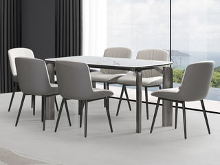 拉斐尔 轻奢 电镀不锈钢五金+岩板+多层实木板+布艺 1.8米餐桌