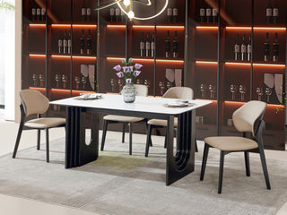 A家家居 现代简约 贴纯白岩板, 实木多层板贴木皮 黑色 长1.4米餐桌