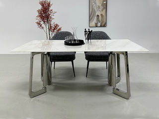 贝斯solo 设计师 网红 极简 进口天然奢石+TY21不锈钢脚架+加厚下斜边+封釉底板 1.4米 长餐桌