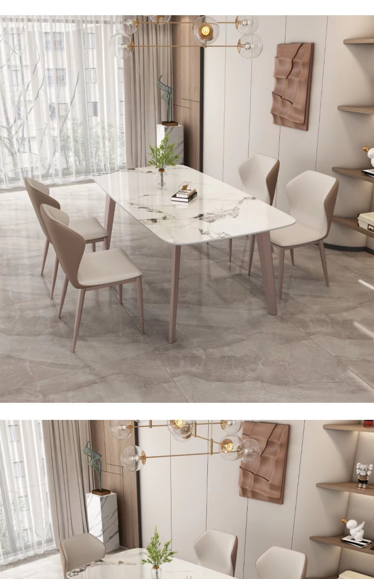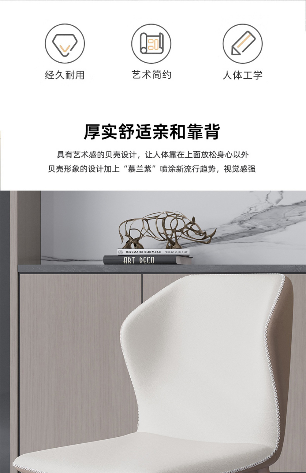 非凡工艺 现代简约 西皮+黑砂 前浅灰后褐色 餐椅1把¥489