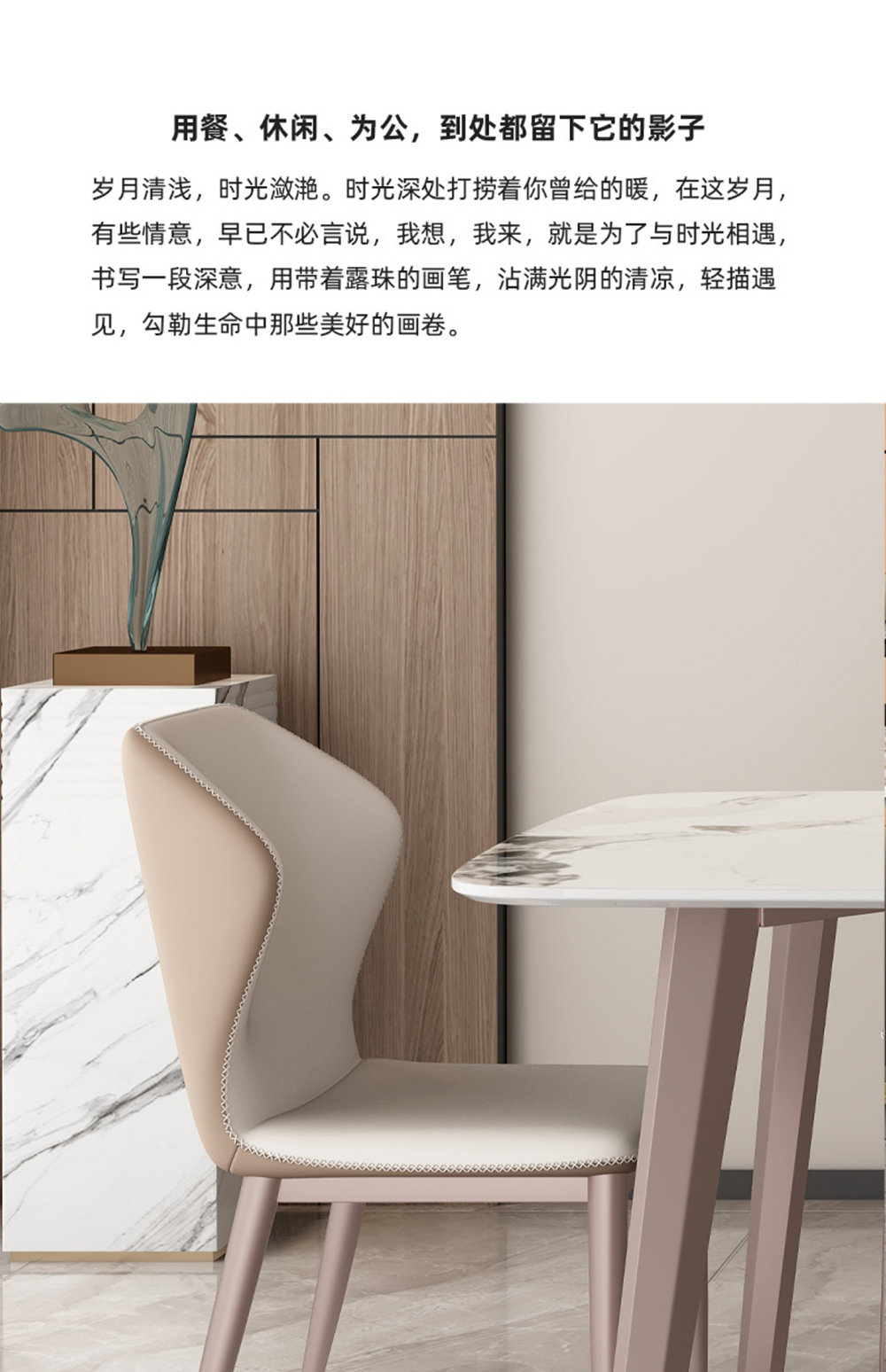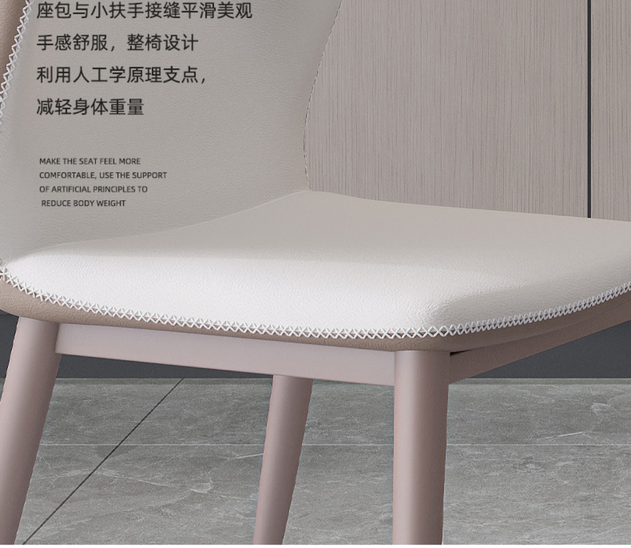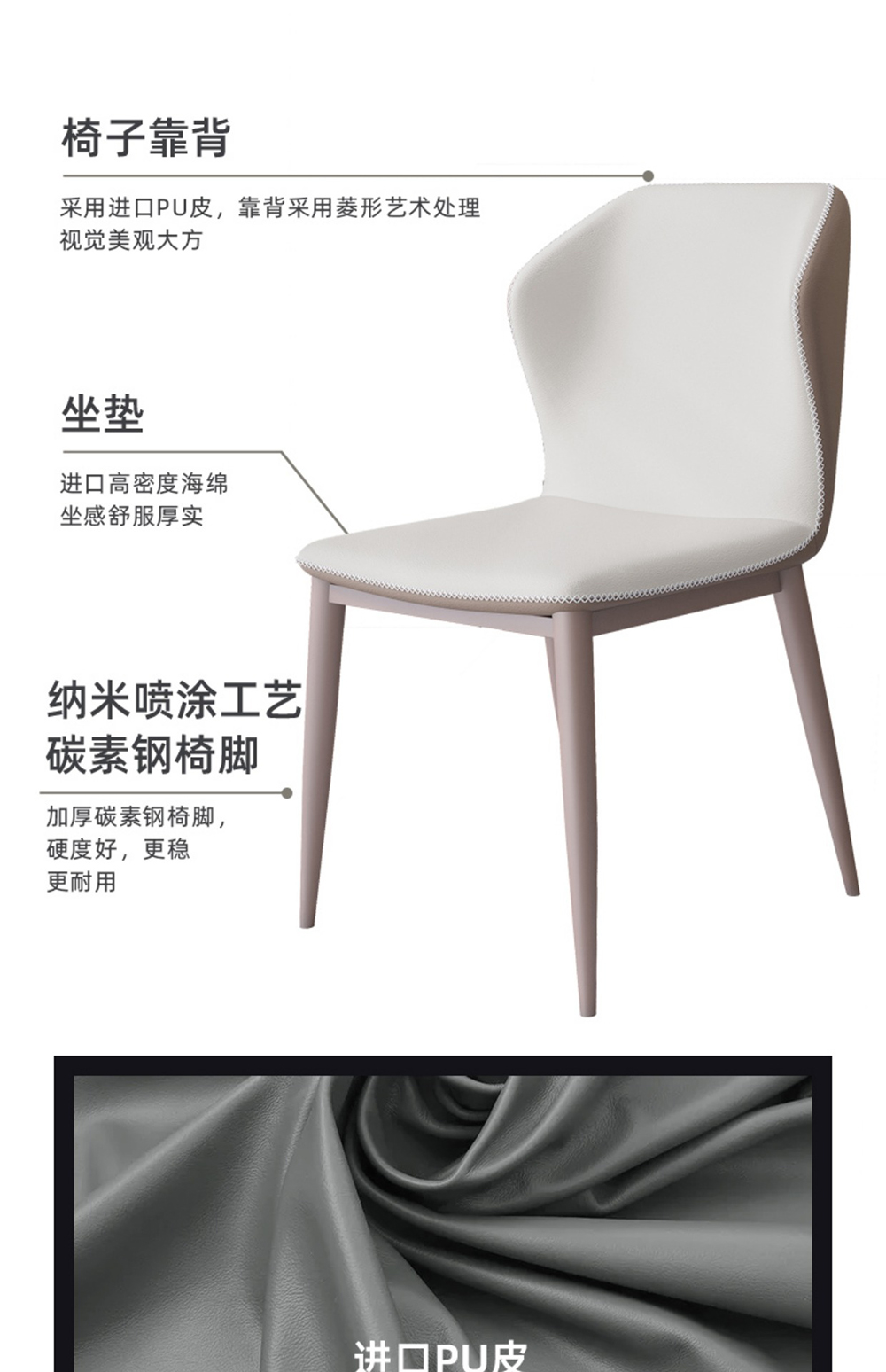 非凡工艺 现代简约 不锈钢+科技皮+编织皮,高弹海绵 米灰色 餐椅1把¥394