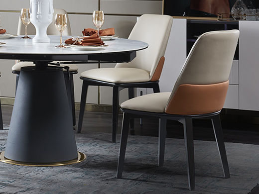 拜洛迪 轻奢 超迁皮+实木脚 咖色+米色 1把餐椅¥1097