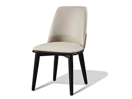 拜洛迪 轻奢 仿真皮+实木弯板贴木纹 花贝米色 1把餐椅