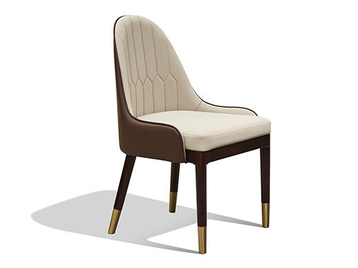 拜洛迪 轻奢 超迁皮+实木脚 咖色+米色 1把餐椅