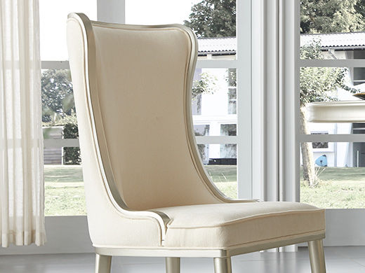 美克金典 美式 欧洲进口榉木+棉麻布艺+高回弹海绵 香槟银 餐椅1把