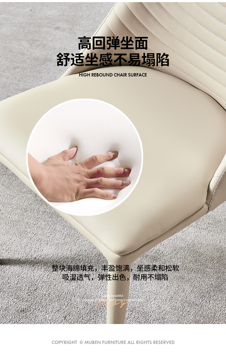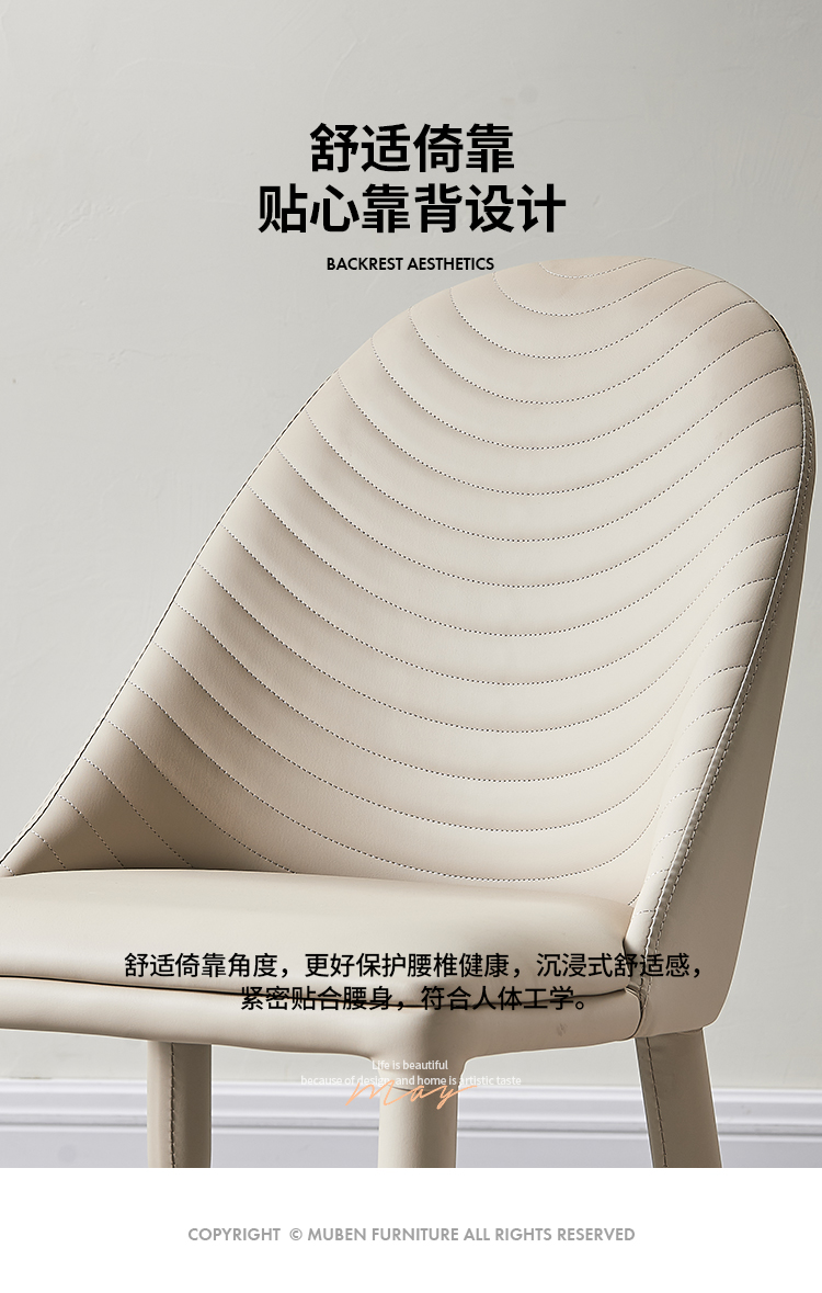 B系优选 奶油风 马鞍皮+碳素钢内架 白色 餐椅1把