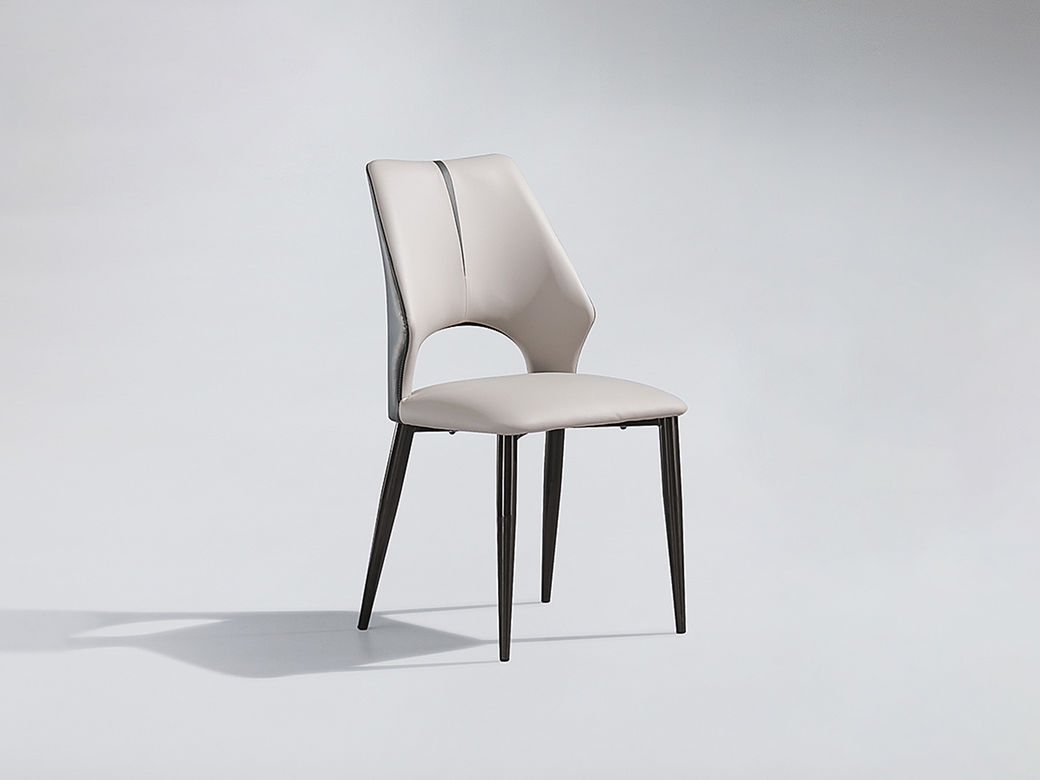 甄品家具 现代简约 碳素钢深灰+西皮 前浅灰后深灰 餐椅1把