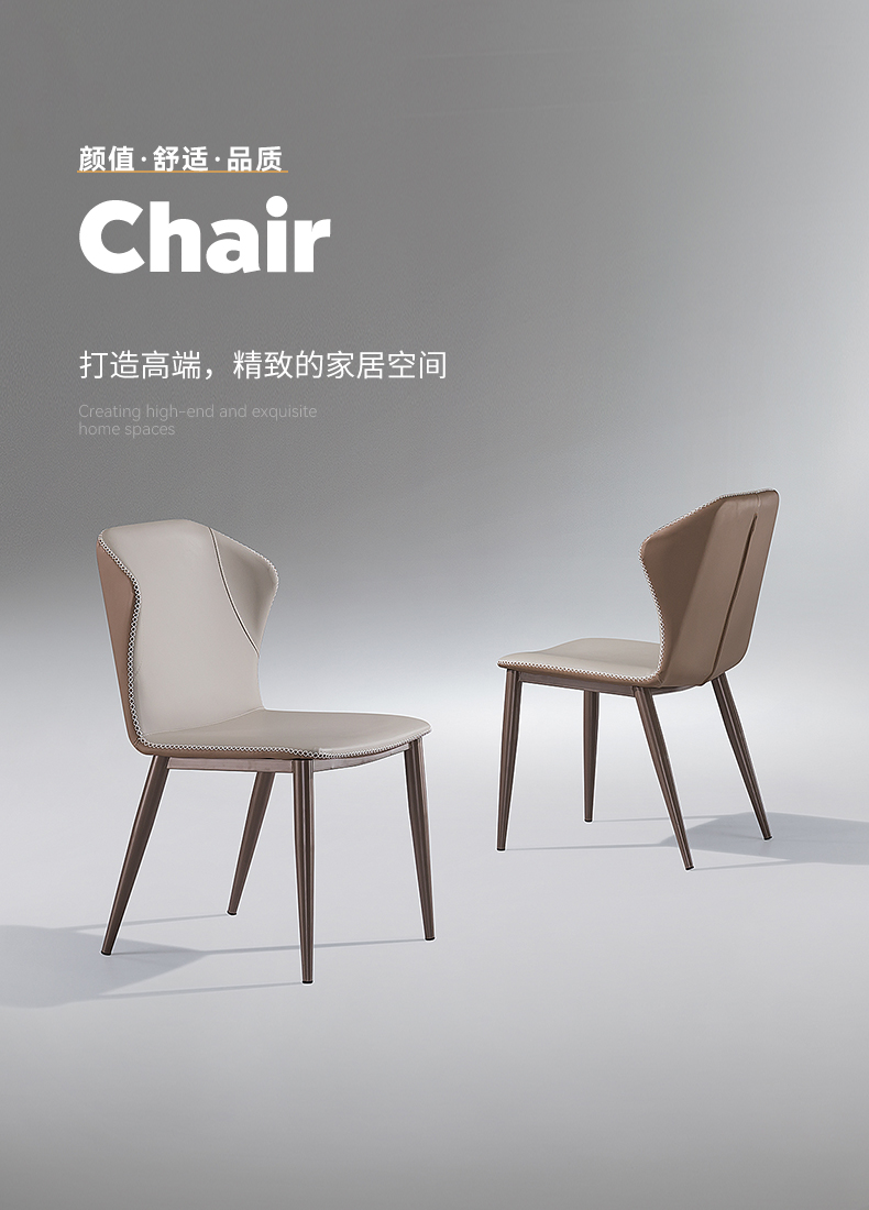 【套餐专享价】每屋优享系列 现代简约 碳素钢墨兰紫+西皮 前米色后咖 餐椅1把 |