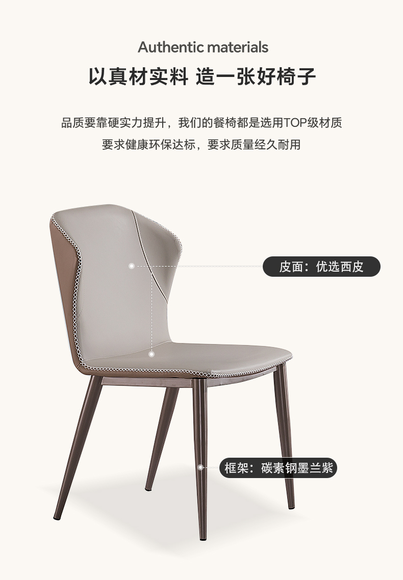 【套餐专享价】每屋优享系列 现代简约 碳素钢墨兰紫+西皮 前米色后咖 餐椅1把