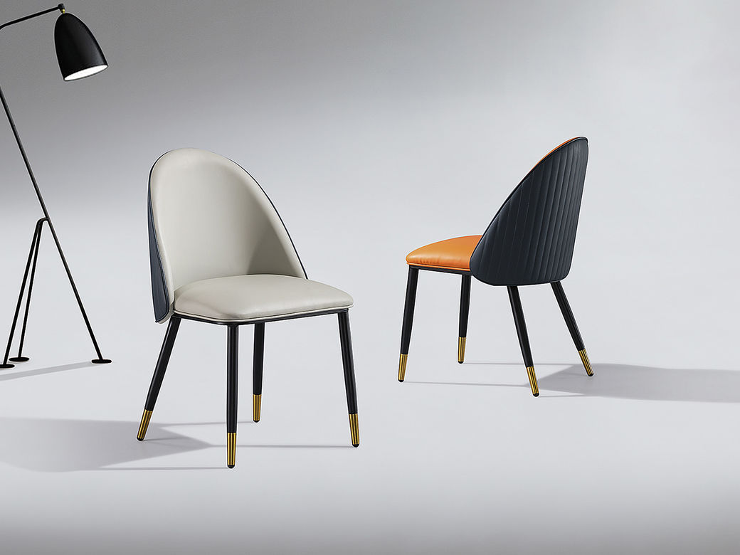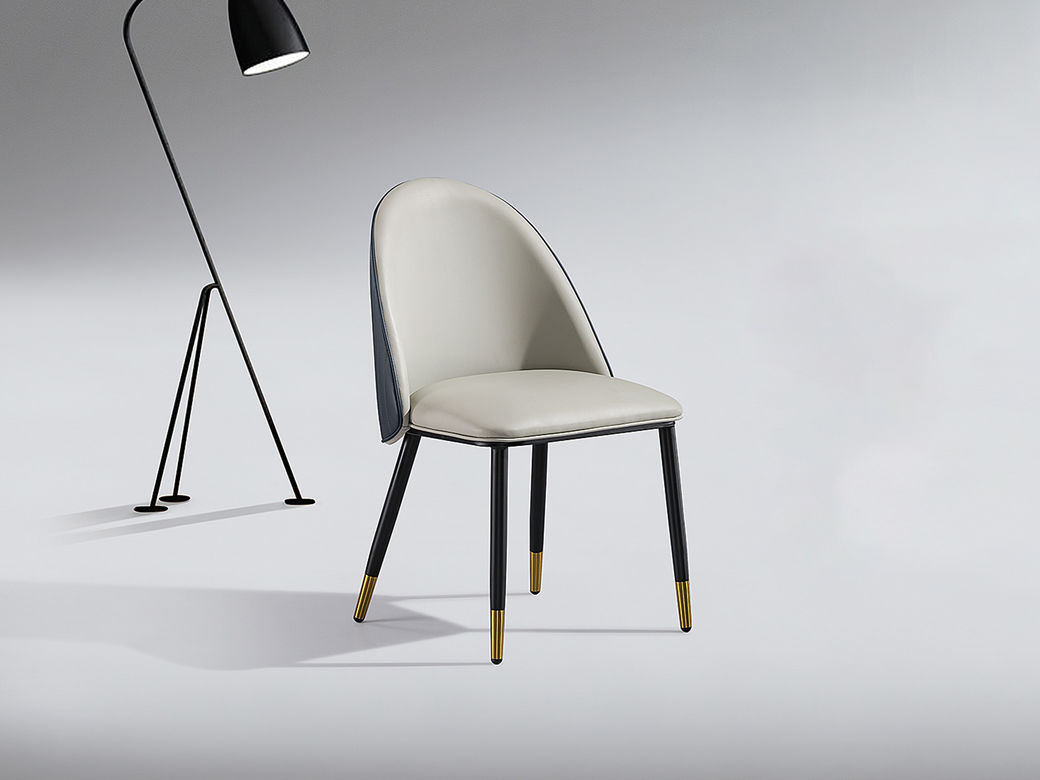 甄品家具 现代简约 黑砂碳素钢+西皮 前灰后咖 餐椅1把¥583