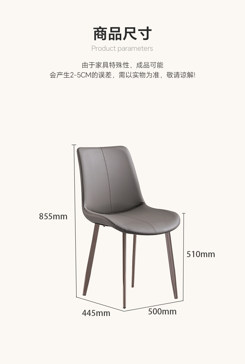 【套餐专享价】每屋优享系列 现代简约 碳素钢黑砂+西皮 米色 餐椅1把